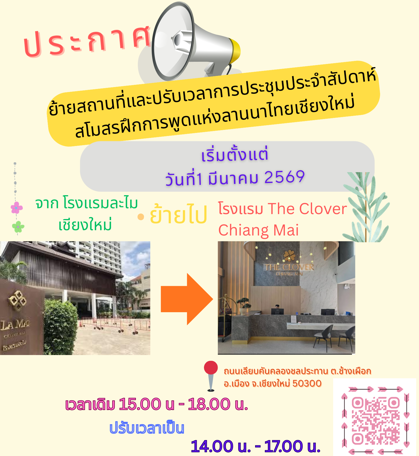 แจ้งย้ายสถาณที่การประชุมประจำสัปดาห์ ตั้งแต่วันที่1 มีนาคม 2569