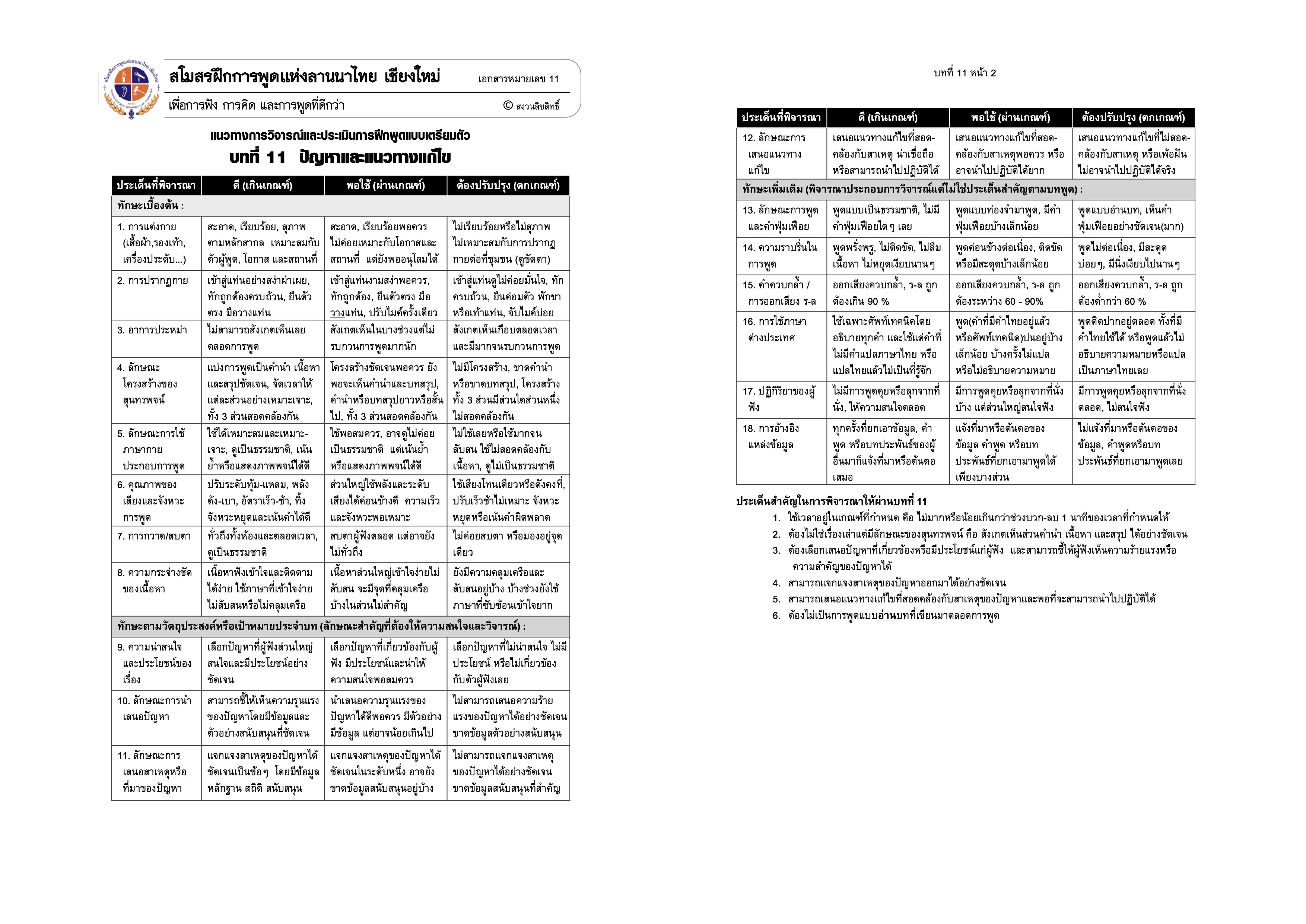 แนวการวิจารณ์และประเมินการพูดบทที่ 11 "ปัญหาและแนวทางแก้ไข" ฉบับปรับปรุงแก้ไขโดยคณะกรรมการวิชาการประจำปี 2568 ของสโมสรฯ ใช้ประกอบกับหนังสือ "คู่มือนักพูด"