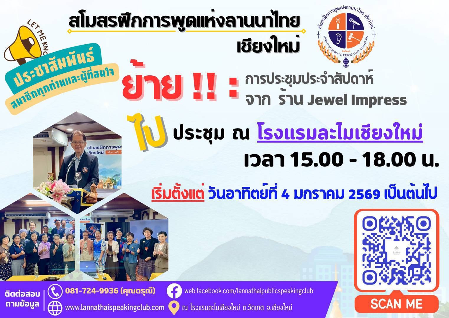 แจ้ง ย้ายสถานที่ประชุมประจำสัปดาห์ ตั้งแต่วันที่4 มกราคม 2569